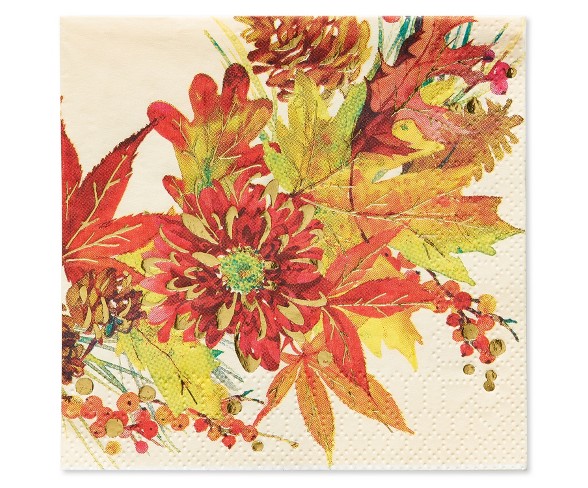 Description Make this Fall celebration especially memorable with these lovely beverage napkins from Papyrus featuring autumn foliage, painted in rich seasonal hues and accented with shimmering gold foil. Coordinates with the Falling Leaves collection.Material: PaperDimensions (Overall): 5 inches (L) x 5 inches (W)Pattern: Printed patternNapkin style: Beverage napkinPackage Quantity: 6Autumn beverage napkinsFeatures autumn foliageAccented with shimmering gold foil Estimated shipping dimensions: 5.0INCH X 0.75INCH X 5.0INCH DPCI : 053-00-0948 UPC : 059584174355 TCIN : 52864834 Estimated shippimg weight: 0.14POUND