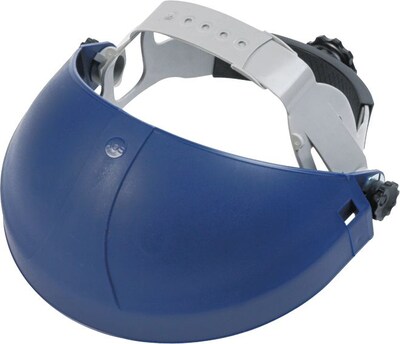 Description Help prevent costly and dangerous accidents with this deluxe headgear AOSafety® Tuffmaster® Blue deluxe headgear accommodates a 5 position crown strap and has ratchet adjustment for optimum comfort. Headgear is made of plastic for added durability and helps to prevent dangerous accidents. Dimensions: 14"H x 8"W Style: Five point ratchet Materials: Plastic For use with: 3M faceshields No snaps, cams or bands needed Meets ANSI Z87.1 standards Faceshield Headgear 1 each Headgear with ratchet adjustment Specifications Hard Hats & Caps Type : Headgear Hard Hats & Caps Color : Blue Hard Hats & Caps Material : Plastic Hard Hats & Caps Suspension : 5 Point Ratchet Brand : AOSafety Customizable : No Weight : 1.00 lbs. per Each