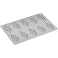 The Pavoni GG028 Plume Silicone Baking Mold features 10 leaf-shaped cavities, each holding 2ml, crafted from 100% platinum silicone. It withstands extreme temperatures from -40°F to 482°F, making it safe for oven, microwave, freezer, and dishwasher use. Compact and durable, this Italian-made mold is perfect for professional-quality baking, freezing, and chocolate crafting.