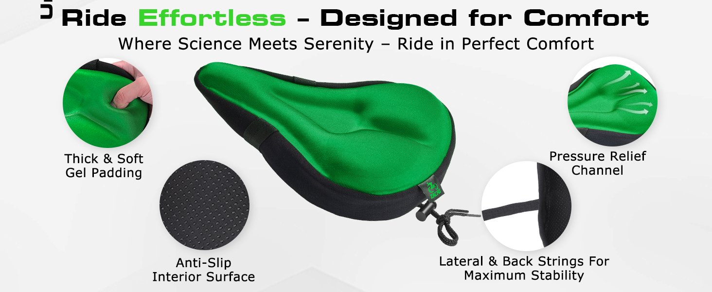 Good quality gel bike seat cover which fits snugly and secures well. It comes with a separate rain cover should you need it but you will need to keep that in your pocked. You will need to adjust your seat post height to make up for the thickness of the cover. It makes a big difference to your comfort whilst riding over bumpy ground/uneven surfaces, which is the whole point of it, obviously.