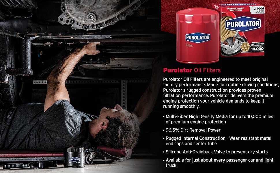 The PurolatorL12222 Premium Engine Protection Spin On Oil Filter is engineered to provide exceptional engine protection for up to 5,000 miles, featuring advanced filtration technology that removes 96.5% of dirt. Its innovative design includes an anti-drainback valve to prevent dry starts and oil leaks, along with a bypass valve and metal center tube to ensure optimal oil flow, making it a must-have for any vehicle owner.