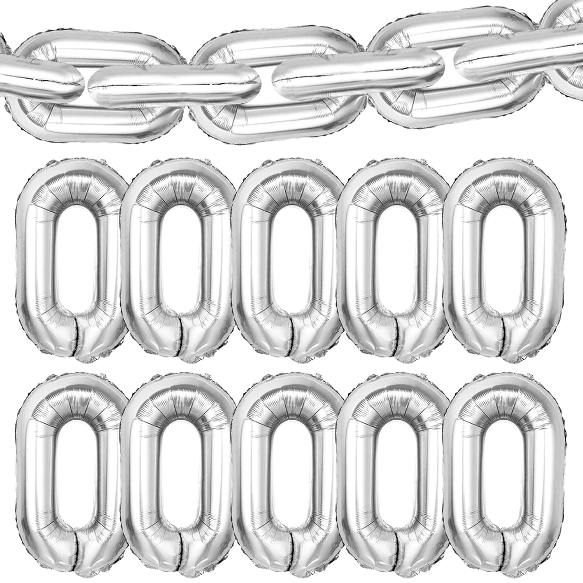 KatchOn Big Chain Balloons are 16-inch silver metallic mylar foil balloons sold in packs of 30, designed to be linked before inflation to create durable, reusable chain garlands. Perfect for hip hop, 90s, and retro-themed parties, these eye-catching balloons add a bold, shiny aesthetic and double as stylish photo props.
