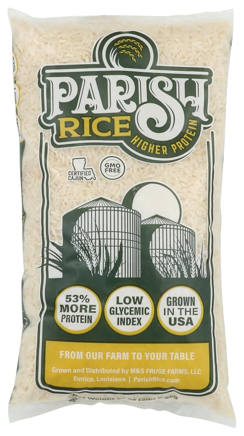 Parish White Rice is a premium, locally grown long-grain rice from Louisiana’s Cajun Prairie, boasting 53% more protein than standard rice and a low glycemic index. GMO-free and nutrient-rich, it’s designed for health-conscious consumers seeking a versatile, delicious staple that supports weight management and blood sugar control. Perfect for diverse cuisines, it’s the smart choice for vegans, athletes, and anyone prioritizing clean, sustainable eating.