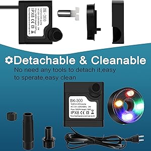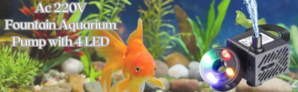 The KANAbee AC 220V Submersible Fountain Pump is a compact, durable accessory designed for ponds and aquariums. Featuring a 4 cc/min water flow rate and a maximum lifting height of 4.99 cm, it ensures steady water circulation. Its 4 multicolor LEDs add a dynamic visual element, powered by a reliable 220V corded electric source, making it a perfect blend of function and style for modern water features.