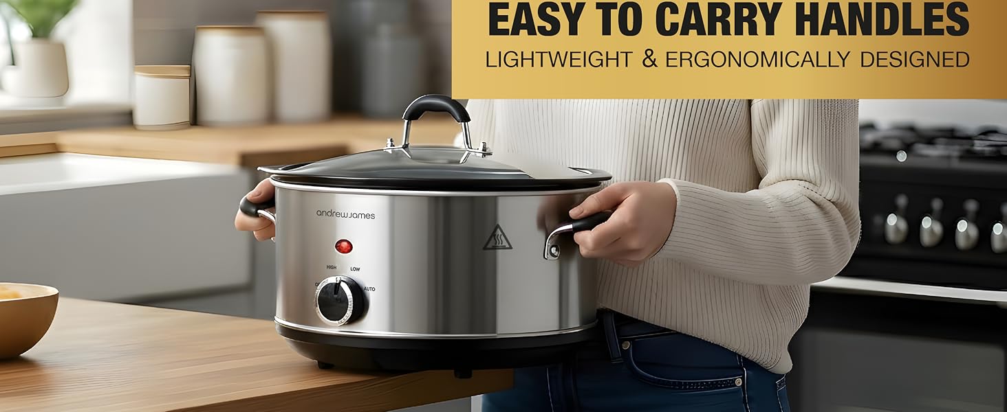 The Andrew James 3.5L Slow Cooker combines versatile 3-temperature cooking with a removable ceramic bowl and tempered glass lid, all wrapped in an energy-efficient 200W design. Perfectly sized for small families, it features cool touch handles and non-slip feet for safe, convenient use, backed by a 2-year warranty.