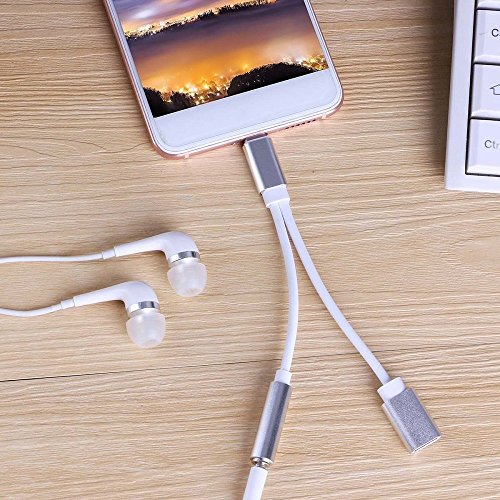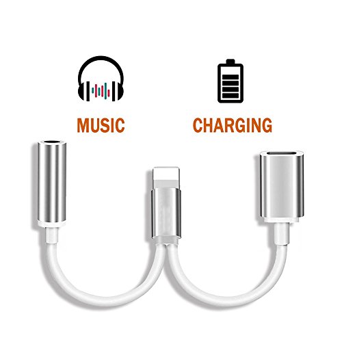 Lightnig to 3.5mm Audio Adapter +Charger Adapter for iPhone 7/7Plus iPhone 8/8Plus iPhone X, Headphone Jack Stereo audio Adapter to 3.5mm earbuds Adaptor,Converter Earphone Adaptor&Headphone Audio Splitter and Charging Adaptor.Support iOS 10.33/11.3or Later -(Silver)