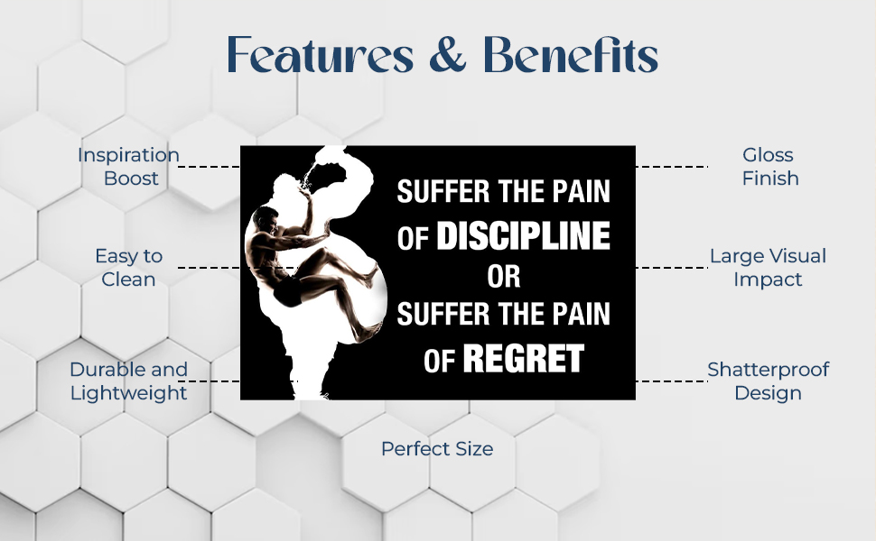 This Gym Motivation Flex Poster measures a bold 24x36 inches, printed on premium 210 GSM thick paper with a glossy, waterproof finish that ensures vibrant colors and lasting durability—perfect for energizing any home or office wall.