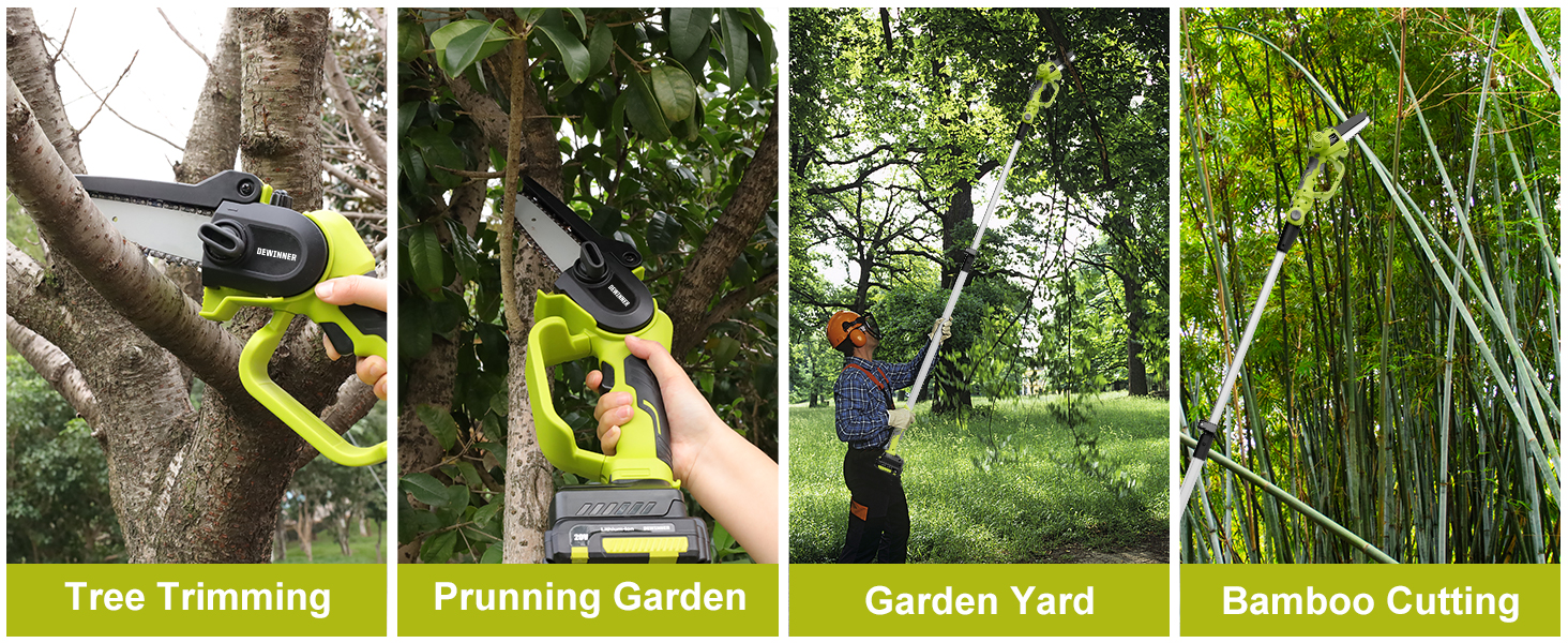 The DEWINNER Cordless 3-in-1 Hedge Trimmer and Chainsaw features a powerful 20V battery, a telescopic pole extending up to 2.54 meters, and an adjustable cutter head. Designed for versatile garden maintenance, it combines safety, ergonomic comfort, and multifunctionality in one lightweight, rechargeable tool.