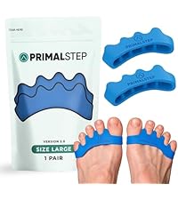 PrimalStep Toe Separators are premium gel-like silicone spacers designed to realign toes, relieve foot pain, and improve mobility. Over 50% thicker than standard models, they support natural toe splay and reduce discomfort from bunions, hammertoes, and plantar fasciitis. Suitable for men and women, including XL sizes, these versatile separators can be worn barefoot, with socks, or inside shoes, making them ideal for both athletic and everyday use.