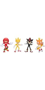 The Sonic 3 Movie 5" Figure 4-Pack Wave 1 features four detailed plastic figures—Sonic, Shadow, Tails, and a new character—at a collectible 1/5 scale. Released November 2024, this no-assembly-required set is designed for ages 3 and up, perfect for fans and collectors seeking a vibrant, ready-to-display addition to their Sonic memorabilia.