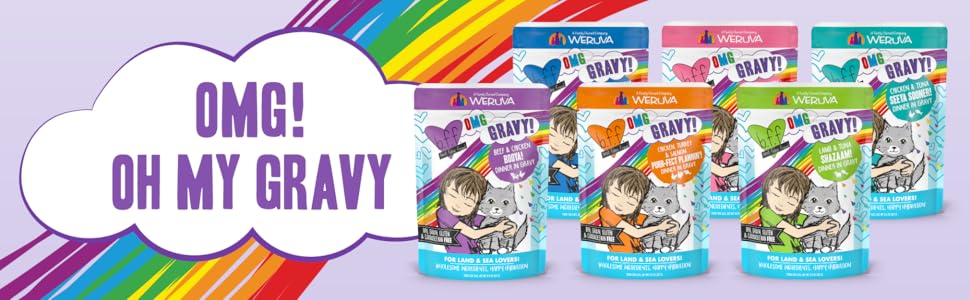 Weruva B.F.F. OMG - Best Feline Friend Oh My Gravy! Variety Pack offers a delightful selection of six gourmet flavors in 2.8oz pouches, ensuring your cat enjoys a nutritious and flavorful meal. With premium proteins and a commitment to clean ingredients, this pack is perfect for discerning pet parents who want the best for their furry friends.