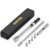 The AEROFORCE 1/4" Drive Click Torque Wrench Set delivers precise torque control from 4 to 20 lbs (5.4-27.2 Nm) with ±3% accuracy. Featuring a quick-release reversible mechanism, a 4" extension bar, and a 1/4" to 3/8" adapter, this compact, durable tool is crafted from Chrome Vanadium Steel and certified to international calibration standards, making it an essential companion for motorcycle and car repairs.