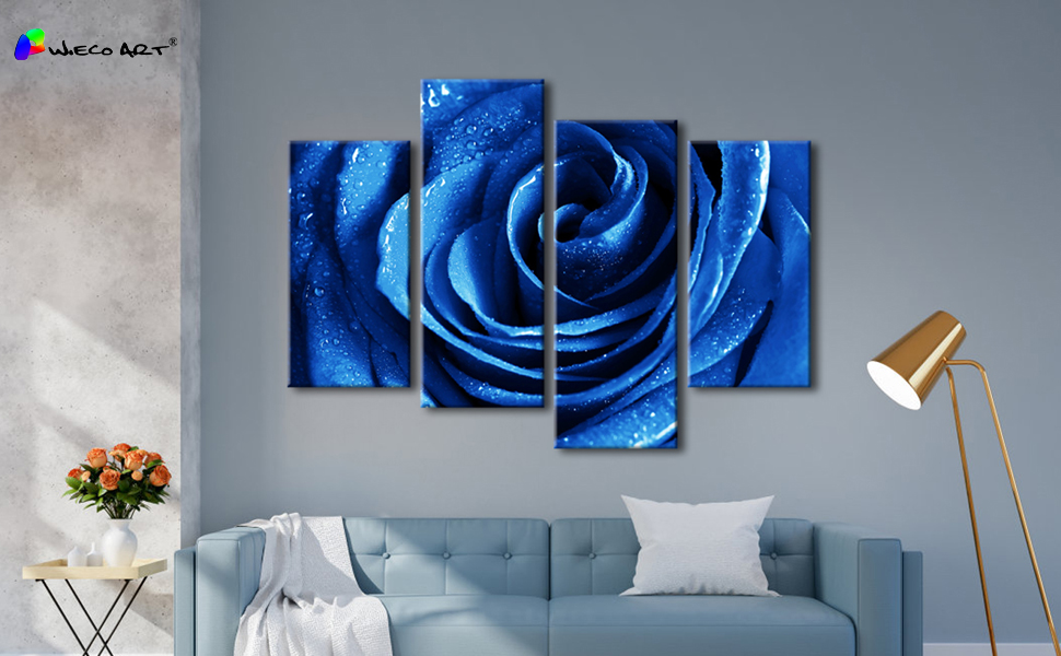 The Wieco Art Blue Rose with Dew Canvas Wall Art features high-definition giclee printing on premium canvas, presented in a stunning 4-panel set. Each panel is designed for easy installation with pre-mounted hooks, making it a perfect addition to any living space. Ideal as a thoughtful gift for the holidays, this artwork combines elegance and versatility, ensuring it complements various decor styles.