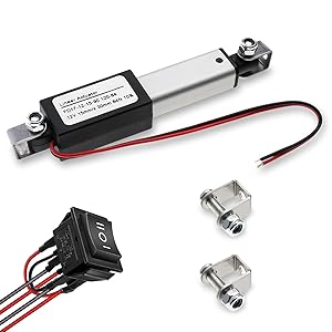 - 【Complete Kit】 Package includes 1 × 12V DC mini linear actuator (stroke:1.2"/30mm, max load 64N/14.4 lbs, speed 15mm/s, IP54 rated), 1 × waterproof momentary switch, and 2 × mounting brackets for fast installation.