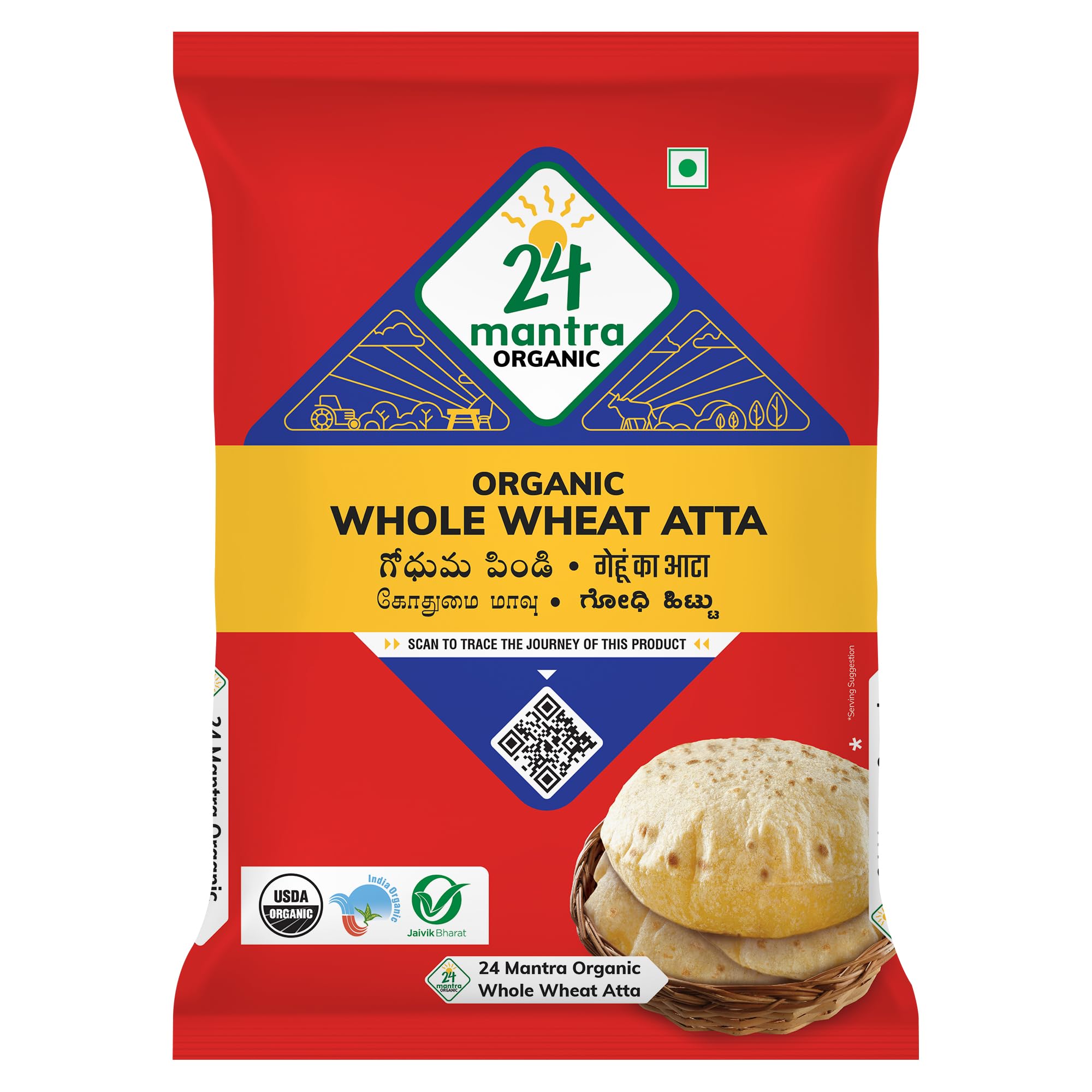 24 Mantra Organic Whole Wheat Atta offers 100% organic, finely milled wheat flour in a convenient 1 kg pouch. With over 1,900 positive reviews and a 4.3-star rating, it’s a trusted choice for health-conscious consumers seeking quality and sustainability in their daily cooking essentials.
