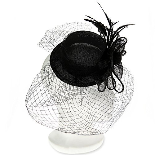 Click here to visit our Storefront for complete selection of Janeo Men's and Women's Jewellery. Click here for more similar Janeojewels Fascinators. Product Details: We have 30 different styles of Royal Household Fascinators with over 60 different colour options. Please visit our Amazon Storefront to view our magnificent collection Mini Top Hat Headwear Occasion Fascinator with Sinamay bow and corsage design centre, & matching goose biot feathers. All mounted on two beak clips attached to elastic; easy to wear. Also available in Black. Classy and stylish fascinator which can be worn to any fancy occasion! Our 'Stirling' Fascinator. Specifications: Look at the combo picture with sizes (All measurements do not include feathers) - Ref: 10139 - Allergy Information: All feathers are 100% Natural - Widest Width: 16cm - Widest Depth: 10cm - Attaches to hair via two beak clips, elastic Janeo Designed Fascinators & Packaging: Our headwear is a pleasure to receive; Gift Wrapped in stunning designed hat boxes! Ribbon Tied Ribbed Box, with Non-Woven Fabric Lining and Decorative Sturdy Outer Box in Polka Dots. A 'Caring For Your Fascinator' fact sheet is attached with each purchase.