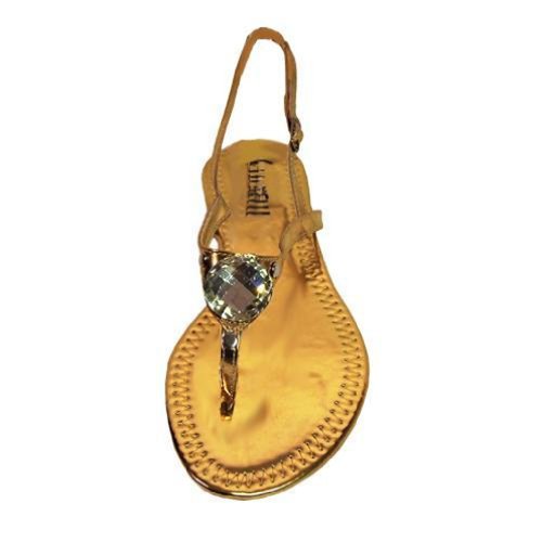 This glitzy glamorous sling back is super sexy and sure to turn heads. Pair with anything from a dress, jeans or shorts, these sandals add a welcomed touch of pizzazz effortlessly. The front has a big dome-shaped faceted cabochon faux crystal stone, and is finished off with a tiny side buckle for sizing.Slightly cushioned insole.Ridged outsole for grip.Factory boxed and well packaged. Product measurements were taken using size 7. Please note that measurements may vary by size accordingly.Product Code: APF00062 SKU: F00169 Sandal straps measure .50 inches wide, at widest point. Shoe sole measures 0.25 inches thick. Shoe heel is 0.5 inches high.