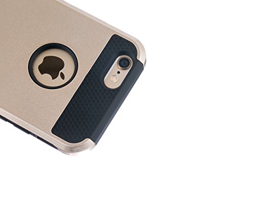 Design for Apple iPhone 6, 4.7" Black+gold color Double-Layers provide extra care: Exterior layer is a hardened shell with Matte finish made by High Quality PC material; Only fits for iPhone 6 (4.7 inch) screen Not fit for iPhone 6 Plus (5.5 inch) screen Combo Hybrid 2 in 1 two color design; color Interchangeable Hard Case protect your Apple iphone from Scratch Easy snap on/off installation Precisely cut openings to allow full access to all the functions of your phone Does not include iphone Material:Made by high quality Hard Plastic material,with Silicone above design Compatible with: For Apple iPhone 6/ Verizon / Sprint /AT&T /T-Mobile / Unlocked Color: GOLD+PINK Package included: 1 x Hard Case Cover for iPhone 6 / 6 Plus 1 x Screen Protector for iPhone 6 (front)Apple iphone 6 4.7" is not included. 1 x Cleaning cloth 1 x Stylus 1 x application card(help to stick screen protector)