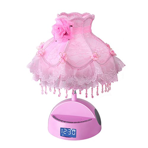 This LighTunes Bluetooth speaker desk lamp is uniquely designed to pack full sound into a combo speaker lamp. It comes equipped with a pink beaded dress shade and pink base, two high quality speakers, Bluetooth compatibility to play music from any Bluetooth enabled device, a 3.5 mm line-in jack to play music from phones, iPods, MP3 players, and other audio devices that are not Bluetooth enabled, alarm clock, USB port in the back to charge your phones or other devices, and an FM radio! This item is NOT a docking lamp. It can charge any phone that uses a USB wire to charge instead of just Apple phones. You won't find these features or quality in any other brand! This lamp is an absolute must have gadget to complete your bedroom, office, or college dorm!