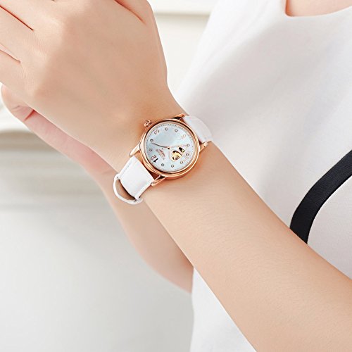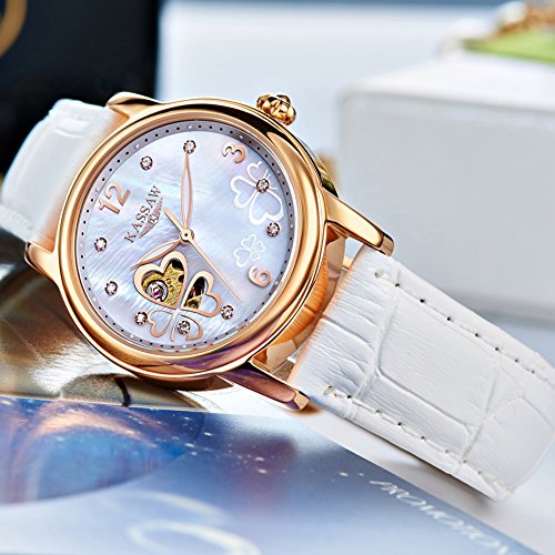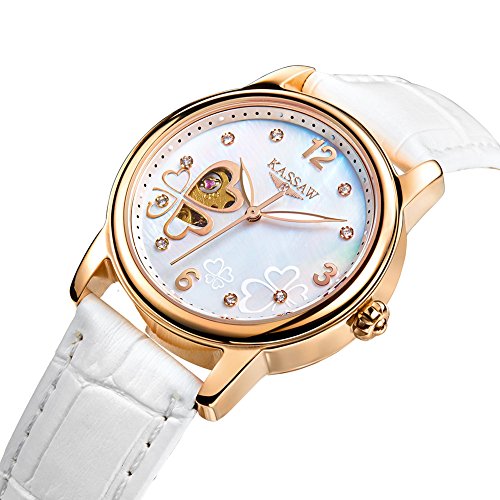 Swiss Automatic mechanical movement with analog display,34 mm gold ion-plated case with diamond. Sapphire crystal.Hollow carved design.Water-resistant to 30m (90 ft).