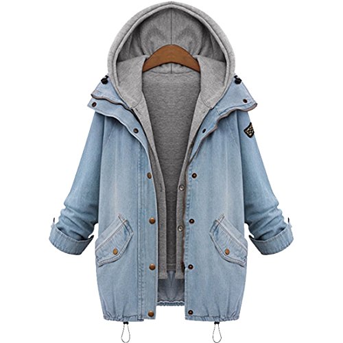 Moon Soul Blue Hooded Long Sleeve Drawstring Denim Outerwear Jacket | Desertcart Peru