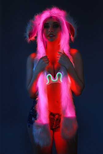 - This fluffy hood style hat lights up in tons of different patterns & colors.