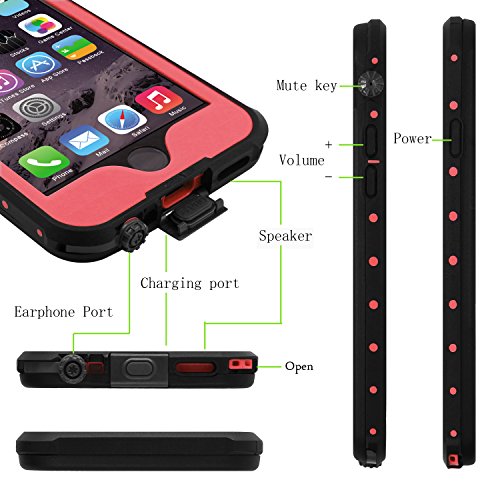 Comeproof Waterproof Case IP-68 completely waterproof, dirtproof and snowproof, Comeproof waterproof case is capable of immersing in water continuously up to 3 M for more than 30 minutes and withstanding repetitive shocks encountered in daily use, best choice for outdoor activites such as camping, surfing, sailing, and skiing. Professional Waterproof Design - Polycarbonate and rubber main frame - Waterproof acoustic ports - Waterproof screen protector - Waterproof film for iPhone home button - Built-in optical glass that covers over the phone's camera lenses Together make Comeproof military standard waterproof protective phone case. Features 1. Waterproof, snow proof, dirt proof, dust proof and shock proof. 2. Rotary mute switch and screw-in seal to waterproof the earphone jack for better waterproof performance. 3. Waterproof screen protector which is fully touch sensitive. 4. Sound enhancement design for clear audio quality. 5. Built-in optical glass to prevent loss of photographic detail, enables high-quality photos and video through the case. 6. Lighter and slimmer than normal functional phone cases. How to install? 1. Remove screen protector.(Screen protector might cause leaking) 2. Put your phone into the back part and cover it with the front part, and then push the edge of the case to hear "click" to make sure the case is sealed. 3. Seal earphone jack and charging port with the plug attached. 4. There is a open slot at the corner of the case, to open the case, you need to insert a coin into the slot, twist the coin to hear a "click", then you can open the case. What you get? 1 Waterproof Case For iPhone 6/6S Plus 1 Cleaning Cloth 1 Earphone Extension Wire 1 User Instruction 1 Hand Strap 12 months of warranty