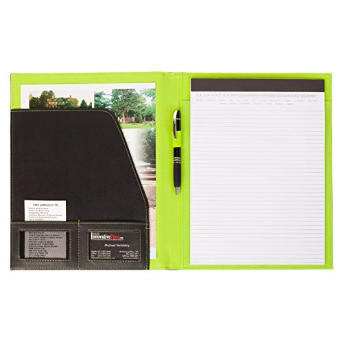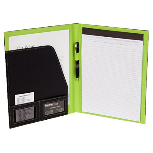 Great portfolio for business and personal use. Available in two color options. Includes 30 Page 8 ½" x 11" Writing Pad, Made of High Quality PVC Material, and has a convenient Card Holders, Elastic Pen Loop And Inside Flap Pocket for your paperwork.
