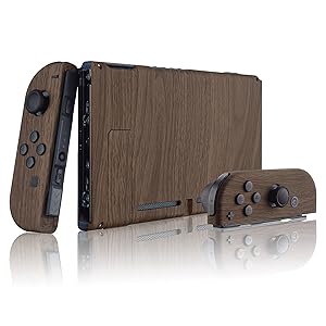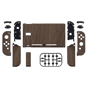 The eXtremeRate Case is a full replacement shell kit for Nintendo Switch consoles and Joycons, featuring a unique wood-look design. Made from durable ABS plastic with a scratch-resistant rubber coating, it ensures long-lasting protection without compromising button accessibility. Designed for DIY enthusiasts, it includes all necessary parts and detailed online installation guides.