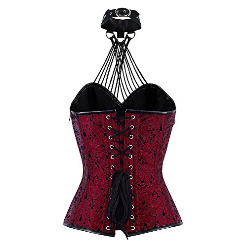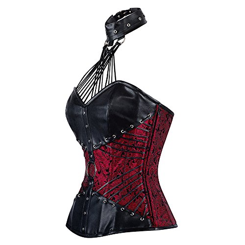 Authentic Steel Boned Black & Maroon Brocade Overbust Corset