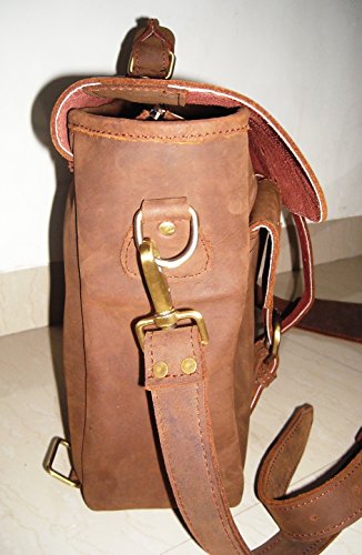 • Dimensions: 16L x 11H x 4W inches (Compatible for 15.5" Laptop) (Can make for 17" Laptop) • 100% Full Grain 2 MM Thick Oil Tanned Buffalo Saddle Leather • Marine Grade, UV Resistant Polyester Thread which Resists Sun, Salt Water & Chemicals • Full Cow Suede lining • 2 Exterior Front Pockets • 2 Interior Open Pockets and 1 Long Zipper Pocket • 1 Backside Magazine/File Pocket • Removable & Adjustable 56" Shoulder Strap Converts bag to a backpack • Extra Long Shoulder Strap Adjusts From 35" to 57" • Antique Brass (Matt) Hardware • Solid Leather cause this heavy duty bag weight @ 3.0 KG when empty