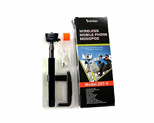 The KJstar Bluetooth Monopod Selfie Stick with Shutter Button is compatible with both iOS and Android smart phones. There are two different phone mount sizes included that fits all phones with widths between 5.6-8.5 cm (2.2-3.3 in). This means it supports a very wide range of phones including favorites like iPhone 5/5S/5C/4S/4, Samsung Galaxy S5/S4/S3, Samsung Galaxy Note 3/2, Google Nexus 4/5, HTC One M8 and Sony Xperia. The monopod has a built-in rechargeable battery that takes only an hour to fully charge and has a standby of 100 hours. It can be used for both taking photos and video. Note: If you are going to use an Android phone after iPhone(vice versa), please keep pressing the button down about 10 seconds for system switch. Specification Material: ultralight and ecofriendly carbon fiber Weight: 190g Flexible pipe weight: 500g Assembly length: 105cm Stretched length: 23cm, totally 7 sections. Battery capacity: 45mah Charging time: 1 hour Standby time: more than 100 hours Compatible system: iOS 4.0 and Android 3.0 system or above. Package include: 1x Extendable Bluetooth remote control handle 1x Extendable phone holder 1x USB data cable