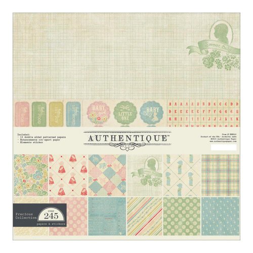 Authentique Paper Precious Collection Bundle: Includes 01-12 double-sided 12"X12" sheets of cardstock, a sheet of Elements stickers and Enhancements cut-apart accents. 03-Elements Seals/Tags/Words/Alphas/Frames. 01-Cardstock Pad 6"X6" 24/Sheets.