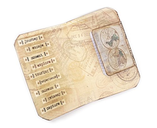 This scrapbook style travel journal is handmade from scratch with designs created from antique maps and other travel related ephemera. The main journal measures 8" x 5 1/4". It comes with a matching mini notebook that counts 50 ruled sheets and measures 3 1/4" x 4 1/2". The notebook can be taken out and placed back into the pocket inside of the journal as you wish. A coordinating library style pocket filled with tags is also included. This set would make a wonderful going away gift.