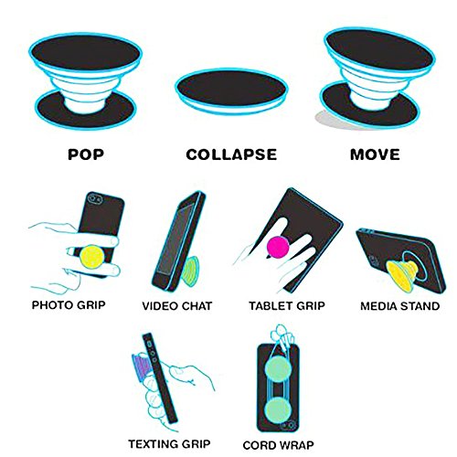 This convenient & stylish "ALL IN 1" mobile device grip, stand, earphone cord wrap and universal mount is one of the coolest phone accessories you can find right now on the market.It is a grip and stand for mobile devices that expands and collapses the way similar to folding toys. You can easily pull it whenever you need a stand, a grip or cord wrap for your earphones. You can use one or two if you want... We guess you could get crazy with three, but whatever. These grips do use a little adhesive sticker on the back of them that is reusable. You can pull them off multiple times without leaving anything behind on your device. They do work with cases as well like Otterbox and lifeproof just not the silicone ones or any rough surfaces. You can use them when you want and pull them off when you don't. You could actually find other things to use them for as well if you get creative. We will warn you the button is a little addictive. Almost like a clicker on a pen. These buttons gives you the benefit to wrap easily your headphones around the back for use whenever you want to use them. You can adapt these grips for whatever function favors you most like the gamer grip allows you to better play your games on your mobile device. For use on iPhone 5, 5s, 6, 6s, 6s plus, iPod, iPad, Samsung Galaxy S5, S7, Tablet, Fire, Kindle and any other android devices. To install you hold it down firmly for 5 seconds on the back of your device. A unique gift to surprise your family, friends and coworkers with for Christmas, birthday or holidays. We Know You Will Love It or Your Money Back! No Questions Asked! Click the "Buy It Now" Button above NOW while promotion last.