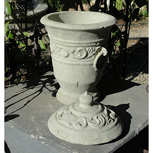 Bring a sophisticated age to your home or garden with the Designer Stone Motif Urn with Lid. This durable cast stone urn features ornate detailing and an eye-catching color that boldly stands out against shrubbery. Suited for five-inch plants, this piece is conveniently plumbed for easy direct planting. About Designer Stone Since 1999, the family-owned Designer Stone has been proudly manufacturing American made garden variety stoneware in a creative range of prices and functions for every standard of living. With artist designed sculptures and planters, Designer Stone’s aim to create spiritually moving and enlivening pieces intends to evoke the precious moments from a garden that remind us who we are and what we do. With every purchase backed by a no-hassle guarantee, Designer Stone promises high-quality products that will enhance your home or garden, no ifs ands or buts. Stocky crock with ornate detail and ageless design. Artfully hand-crafted for uniqueness and quality. Weatherproof seal for outdoor longevity. Plumbed for quick and easy direct planting. Dimensions: 6.5 diam. x 11H inches.