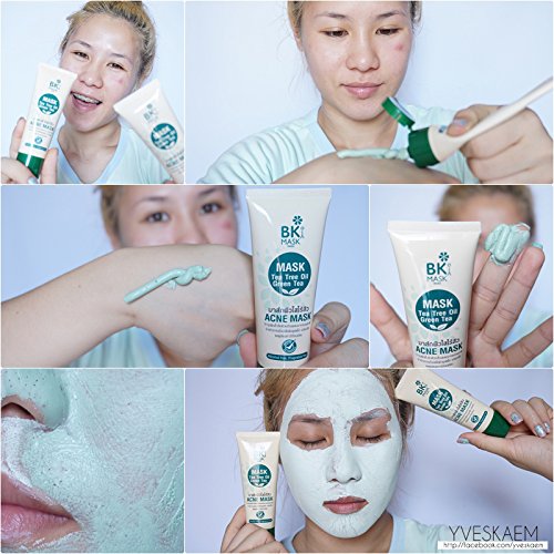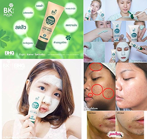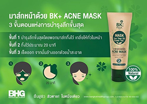 ➤ Asiatic liposomes and nanoparticles end caps vitamins: New skin gently. ➤ Menthol: reducing inflammation. ➤ extract, Green tea: antioxidant skin youthful and radiant. ➤ Marine salt: to help shed the skin's oil balance. Category: Mask face. FDA REG.NO. : 10-1-5744131 Size: 30 g. Direction: BK MASK ACNE applied to the face, leave it for 20 minutes, then rinse with clean water.