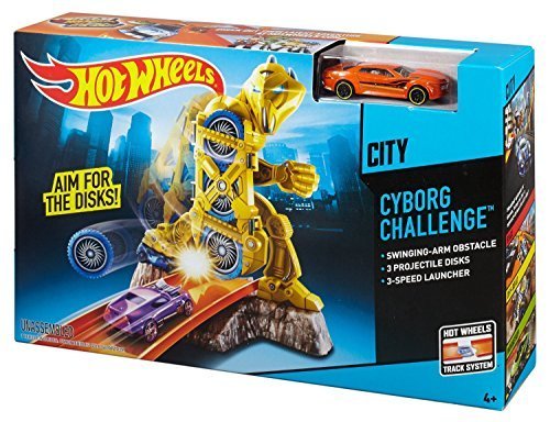 The robots are coming! Boys will use the Hot Wheels robo wrecker track set to save the city from the giant robot that's blocking the road. Take out his armored plates one at a time as his robotic arm swings back and forth. Or execute the timing perfectly so that you slip right by his defenses. Sets feature multiple tabs so boys can connect to more sets within the Hot Wheels Track System.