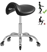 The SALONFACTORY Saddle Stool combines ergonomic design with heavy-duty durability, featuring a thickened PU leather saddle cushion, silent polyurethane wheels, and a sturdy chromed metal base supporting up to 300 lbs. Adjustable from 19 to 24.5 inches in height with 360° swivel, it’s perfect for professionals seeking comfort and mobility in salons, spas, medical offices, or home workspaces.
