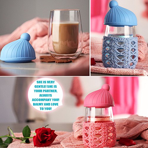 Creative and fashion double wall glass cup Material:The high borosilicate glass+Food grade silicone Capacity:About 280ml Size:7cm(cup mouth)*12cm(height)*8.5cm(width) Package:1*glass cup,1*silicone lid,1*wool yarn cup cover