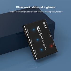 The 8K DisplayPort Splitter 1 in 3 Out allows you to split a single DisplayPort signal into three outputs, supporting resolutions up to 8K@30Hz and 4K@120Hz. It features both MST and SST modes for versatile display options and is compatible with various operating systems. Ideal for professionals seeking to enhance their multi-monitor setup.