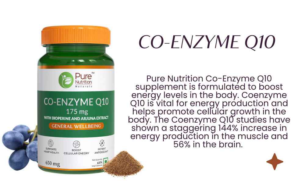 Pure Nutrition Bio Coenzyme Q10 delivers a potent 175mg dose of highly absorbable CoQ10 enhanced with Bioperine® and Arjuna extract. Designed to support heart health, boost cellular energy, and protect brain function, this vegan-friendly supplement is your daily ally for cardiovascular vitality, cognitive resilience, and immune strength.