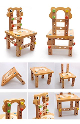 A small lovely tool bench complete with 49 accessories and tools including screwdriver and spanner. Great for role play and developing motor skills. You can during playing develops manual skills, imagination, creativity etc. Send your children this fun chair toy right now! Style 1 Material: green wood The number of products : 52 pieces Product weight: 2kg Size: 22.5 x 22.5 x 11.5cm Suitable for kids - age over 3 years( Warning: Choking Hazard - Small parts, The adult supervision is recommended). Style 2 Material: green wood Size: 36x28.5x6cm Weight: 1.2kg The number of products : 49 pieces Suitable for kids - age over 3 years( Warning: Choking Hazard - Small parts, The adult supervision is recommended). Chair Installation Instructions Step 1: Install the foot of the chair Step 2: Install all the feet of the chair Step 3: Install the chair back Step 4: Install the head of the chair Step 5: Fixed screw on the back of a chair bars Step 6: Fixed screw on the foot of a chair bars Note: 1. Due to manual measurement,please allow 1-2cm difference. 2. Picture shown, which mainly lies in different light effect and computer monitor.