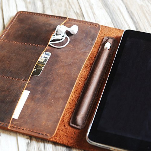Made by hand. No sewing machines or lasers; just hand tools, needles, and thread. The Best Way to Sew Leather Is Actually By Hand! All our goods are sewn by hand using the "saddle" stitch method. This manual technique offers a stronger suture than the traditional lock stitch created by sewing machines. Although it is slower to make one product, we want our leather products to last a lifetime ***** Description and Features ***** This iPad Case is made from italian oiled leather and hand-stitched up by wax thread. It will be aged beautifully over time. It is sturdy, practical and stylish.★ Material: Italy genuine top grade oiled leather, will be aged beautifully over time. ★ The part the iPad clips into is a pliable rubber and it is SEWN in, not glued like all the others you come across. ★ An apple pencil holder can protect your apple pencil ★ Hand stitched with Waxed linen thread, 100% handcrafted, made to order ★ fit for iPad Pro 9.7 inch / 10.5 inch/ Pro 12.9 inch(Please drop the option Menu to choose your device)★If you want to engrave something ,please enter the engrave content when check out ,thank you ********** shipping ********** We will ship your parcel by USPS First Class International Mail Service, usually it will take 7~10 business days to delivery from China to US. Thank you for your patience.