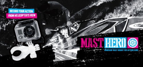 MastHero mast mount for GO PRO or any camera adapted to fit the GoPro Tripod mount is designed specifically for windsurfers. It is like having a personal helicopter. You will be able to video/record your windsurfing preformance from helicopter's view. You will be able to do amazing videos and shots with your GO PRO camera. With mast mount for GO PRO solution you will improve your windsurfing skills much faster, because you will be able to diagnose you transitions and trick attempts. MastHero mast mount will help you to improve your planning technique, you will become more efficient in tacks, jibes, duck jibes, chop hop and so on. Many windsurf instructors are already testing the Masthero and they love it. With Masthero mast mount you can even use two GO PRO cams, so you are able to see both sides of the sail at the same time, analyze hand and footwork during transitions and get a more complete picture of what's going on.