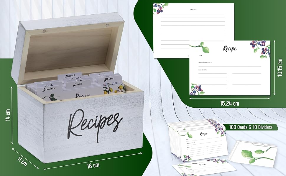 Mint And Elm Rustic White Recipe Box With 100 Cards | Desertcart Peru