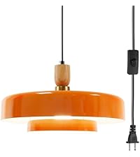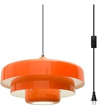 The Qepeety Mid Century Pendant Lamp in vibrant orange features a unique 3-layer metal shade crafted with advanced wire cutting for stunning light effects. Measuring 13.8" diameter and 8.2" height, it includes a 59" adjustable cord and flush mount canopy for versatile placement. Compatible with E26 bulbs including dimmable LEDs, it delivers a bright 5400 lumens output at 135 lumens per watt efficiency. Perfect for kitchens, dining rooms, and hallways, this UL-listed fixture combines vintage style with modern functionality for a standout lighting solution.