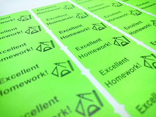 480x Fluorescent (MATHS THEME) Excellent Homework Stickers (38x21mm). Choice of 4 Highly Fluorescent Colours - Sharp Black Silhouette Design On Premium Quality Self Adhesive Label Stock. Free UK First Class Delivery.