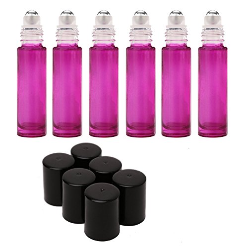 YOOHO Glass Roller Bottles With Stainless Steel Ball Refillable Aromatherapy Essential Oils, Perfume Bottles - Refillable Slim with Metal Ball and Black Plastic Lid, Purple (9)