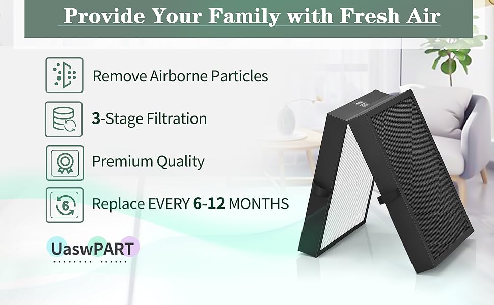The UASWPART 7400 Smart Filter is a premium replacement filter compatible with Blueair Protect 7410i and 7470i air purifiers. Featuring a 3-step filtration system with a pre-filter, True HEPA filter capturing 99.97% of particles, and a honeycomb-structured activated carbon layer, it effectively removes dust, allergens, odors, and VOCs. This 1-pack filter ensures optimal purifier performance and fresh indoor air, offering a cost-effective solution for year-round air quality maintenance.